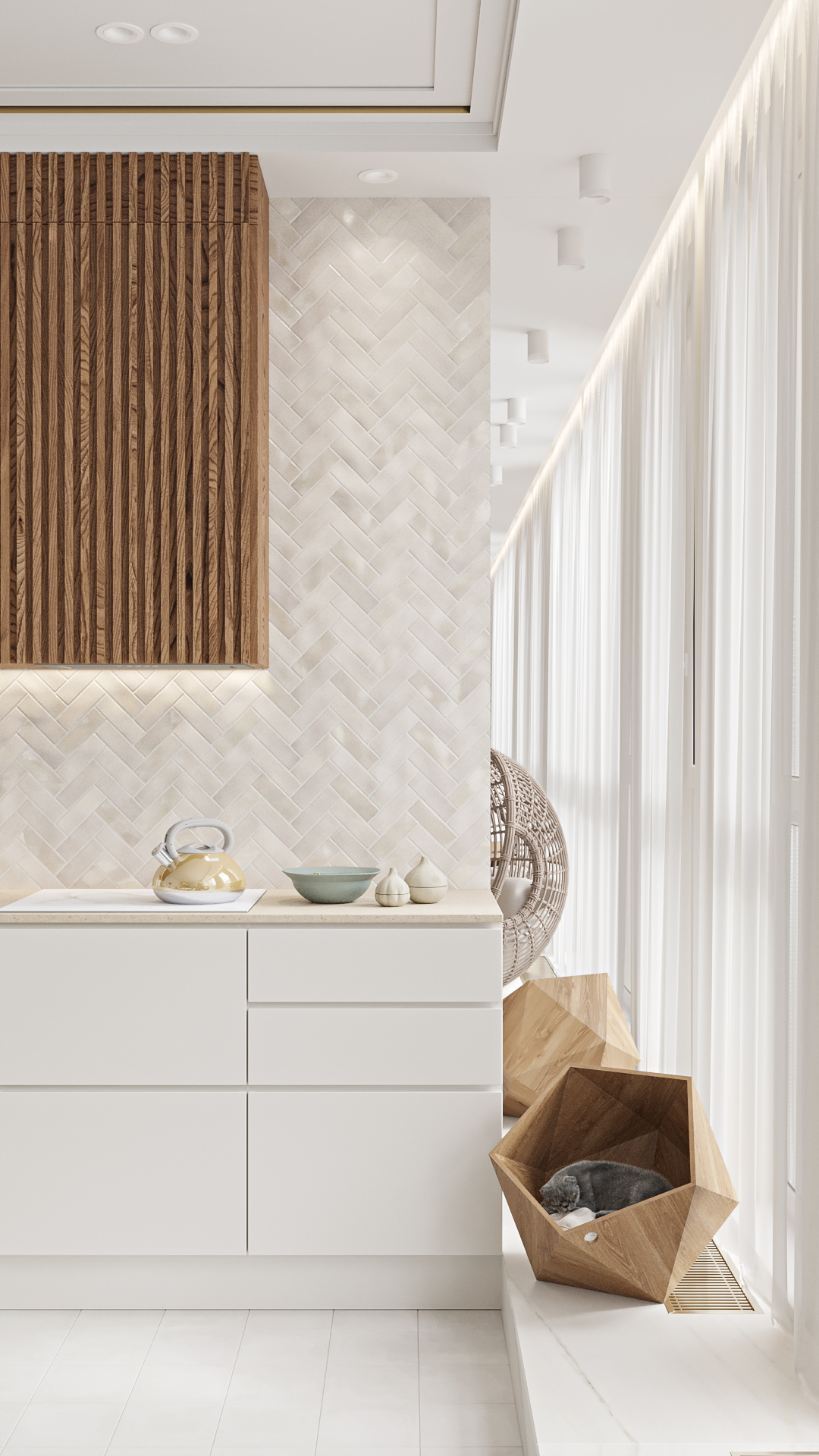 Современная квартира для молодой пары с тремя детьми. Просторная гостиная, комфортная обеденная зона и роскошная кухня с островом. Три спальные комнаты, большая ванная комната и просторный гостевой санузел с душем. Помимо этого - просторная входная зона и две больших гардеробных. Весь дизайн интерьера выдержан в легкой классике. Палитра основных помещений в основном варьируется от теплого-светлого до холодного-насыщенного серого цвета. Текстура натурального дерева и природный рисунок белого мрамора привносят в интерьер изысканности. Чистота линий и классический прием организации пространства придают интерьеру особый шарм. Архитектурой дома предусмотрены большие окна, дневной свет равномерно окутывает все пространство и позволяет всем текстурам заиграть особенными оттенками. Тщательно подобранное вечернее освещение позволяет осуществлять различные сценарии, подчеркивающие изящность интерьера.