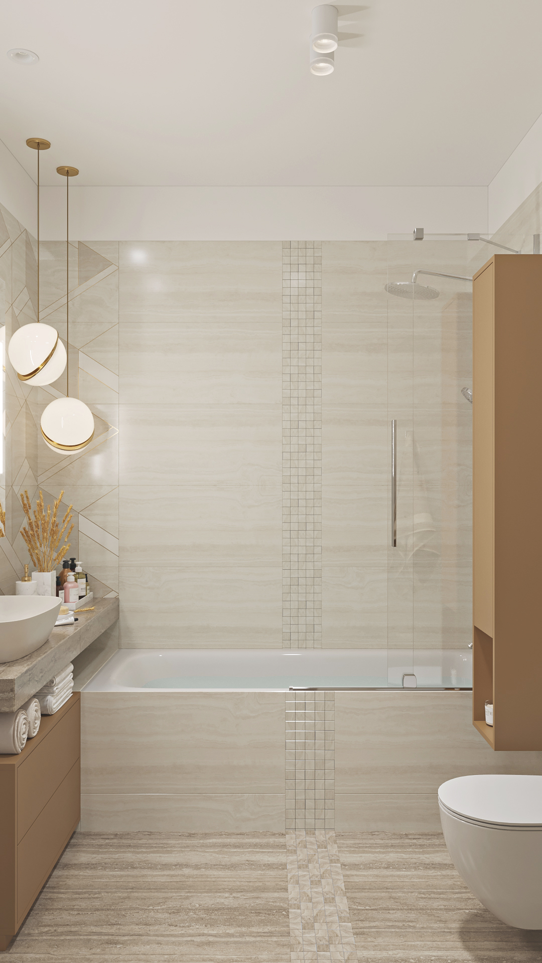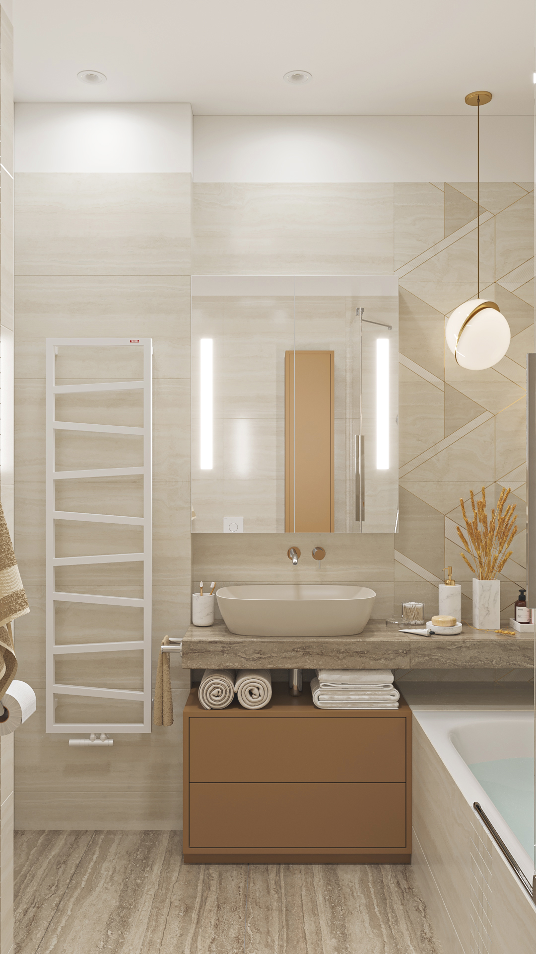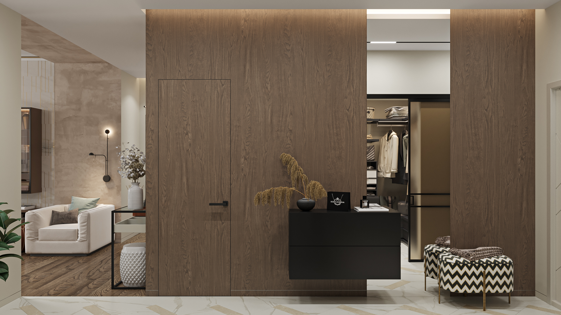 Проект был разработан для молодой пары, которой было важно создать уютное пространство, где всегда можно зарядиться теплом и светом домашнего очага. Для реализации была подобрана медовая палитра. В отделке были использованы отделочные материалы, демонстрирующие природный рисунок: камень, дерево, металл. В интерьере присутствуют графические элементы, выполненные ППУ молдингами или рейками из массива дерева. Световые приборы выполненные в современном исполнении. Текстильное оформление добавляет мягкости и уюта.