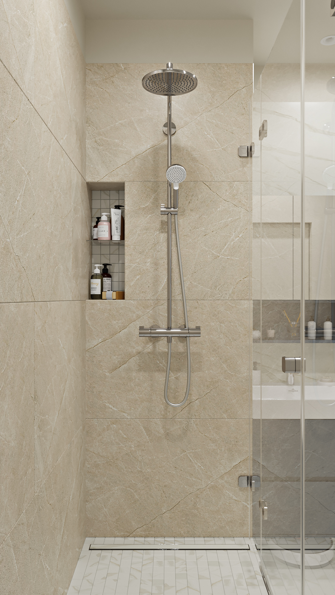 Не могу не рассказать историю создания и преображения ванной комнаты. Благодаря грамотной планировке, нам удалось увеличить площадь и так удачно, что появилась ниша для душевой кабины и для размещения ПММ. При этом, организовав полноценную ванную чашу и две раковины.